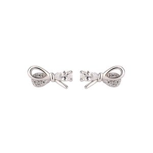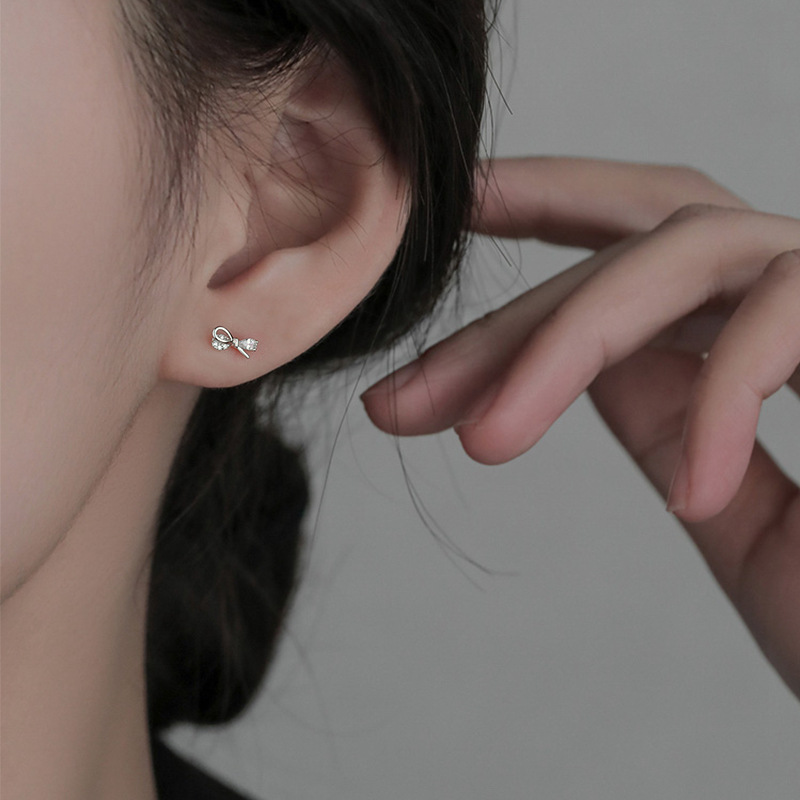 Sterling silver bow earrings for women, fashionable earrings, versatile and elegant sparkling diamond earrings