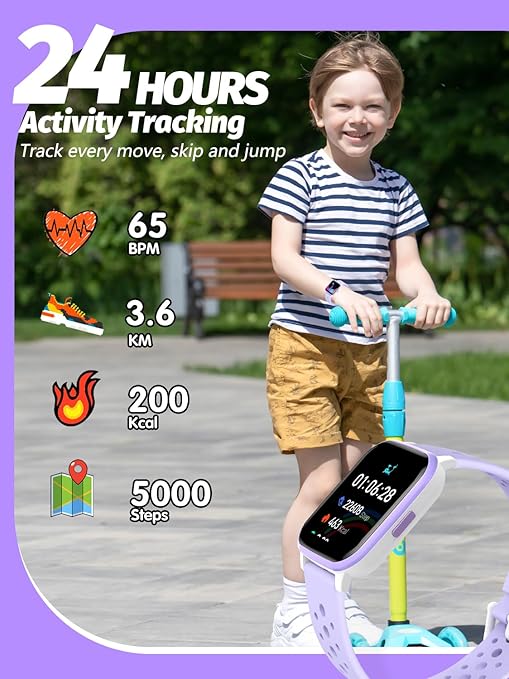 Kids Smart Watch Girls Boys, Smart Girls Watch for Kids Smart Watch Gifts for 4-16 Years Old with Sleep Mode Multiple Sports Modes Pedometer Birthday Gift for Boys Girls (Purple)